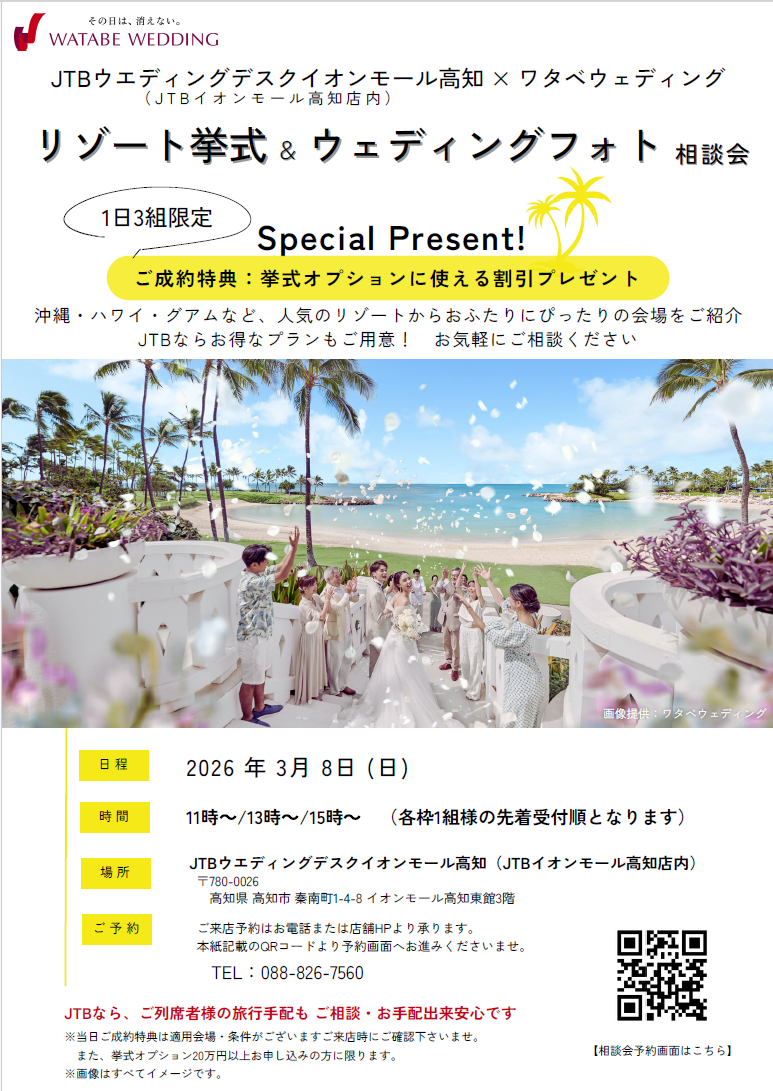 「写真に残す結婚式」や「旅先での記念フォト」をお考えの方は、ぜひJTBウエディングプラザ・デスクへご相談ください。ご来店予約のうえ、理想のフォトプランを一緒に見つけましょう。