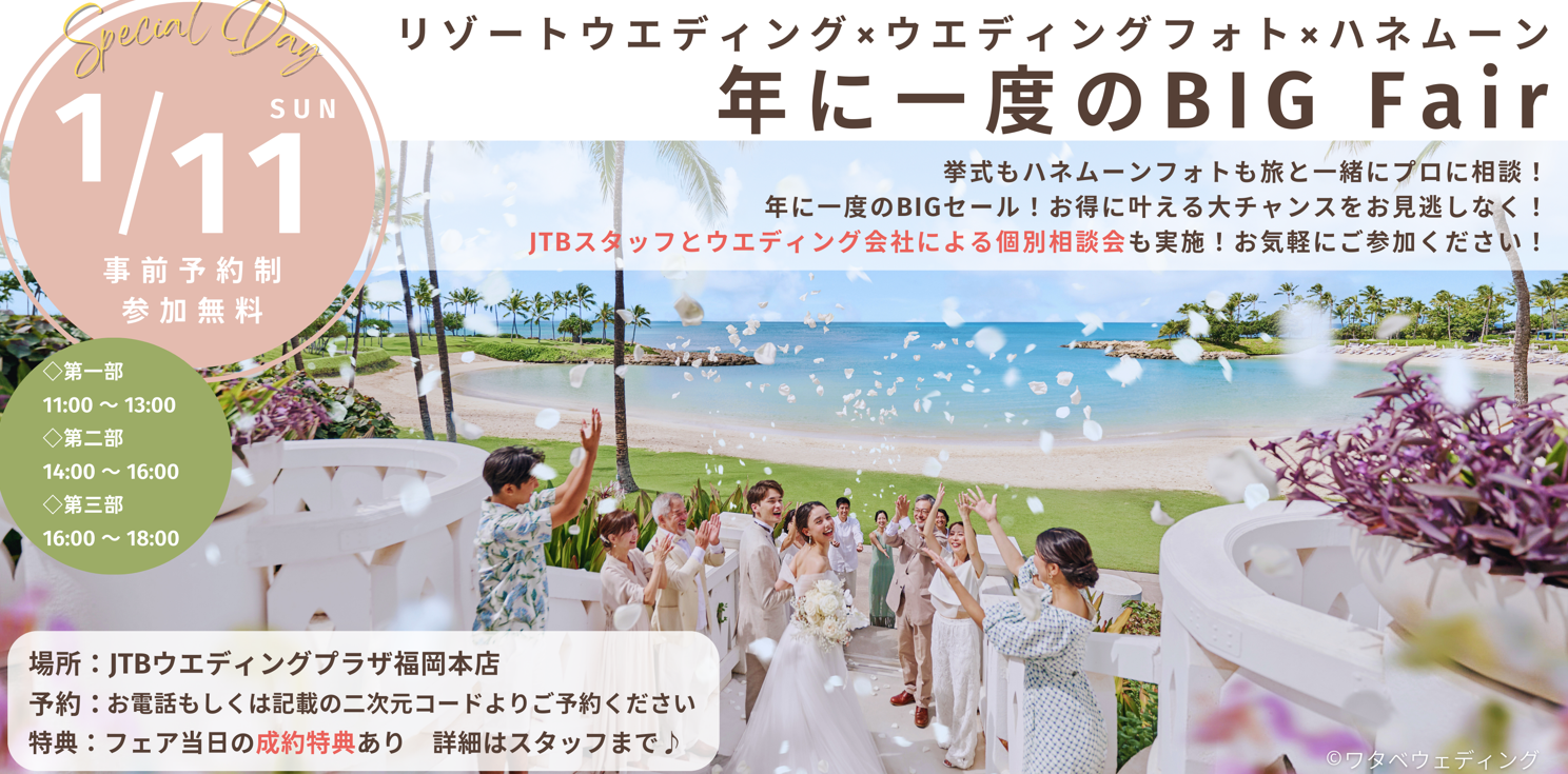 1月11日限定開催!リゾートウエディング、ウエディングフォト、ハネムーンをご検討のカップル様へ
