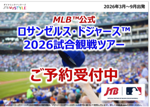 JTBはMLB™(メジャーリーグベースボール)のアジアにおけるトラベル&ホスピタリティ事業のオフィシャルパートナーです。さらに、2025年に日本の旅行会社として初めての「オフィシャルパートナー・オブ・ザ・ロサンゼルス・ドジャース」となりました。