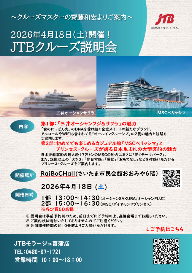 クルーズ未経験の方も、リピーターの方も、この機会にぜひご参加ください!