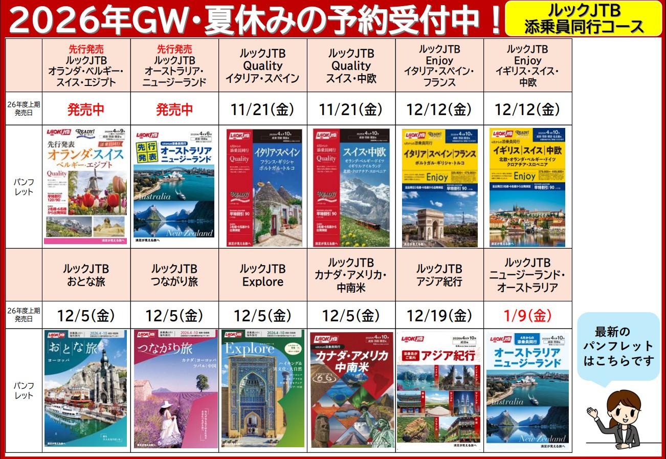 海外旅行も国内旅行もたっぷり充実!はじめての海外旅行や学生旅行に嬉しいポイントがもりだくさん!あまり旅行に慣れていない方でも、サポート充実のJTBなら安心です。