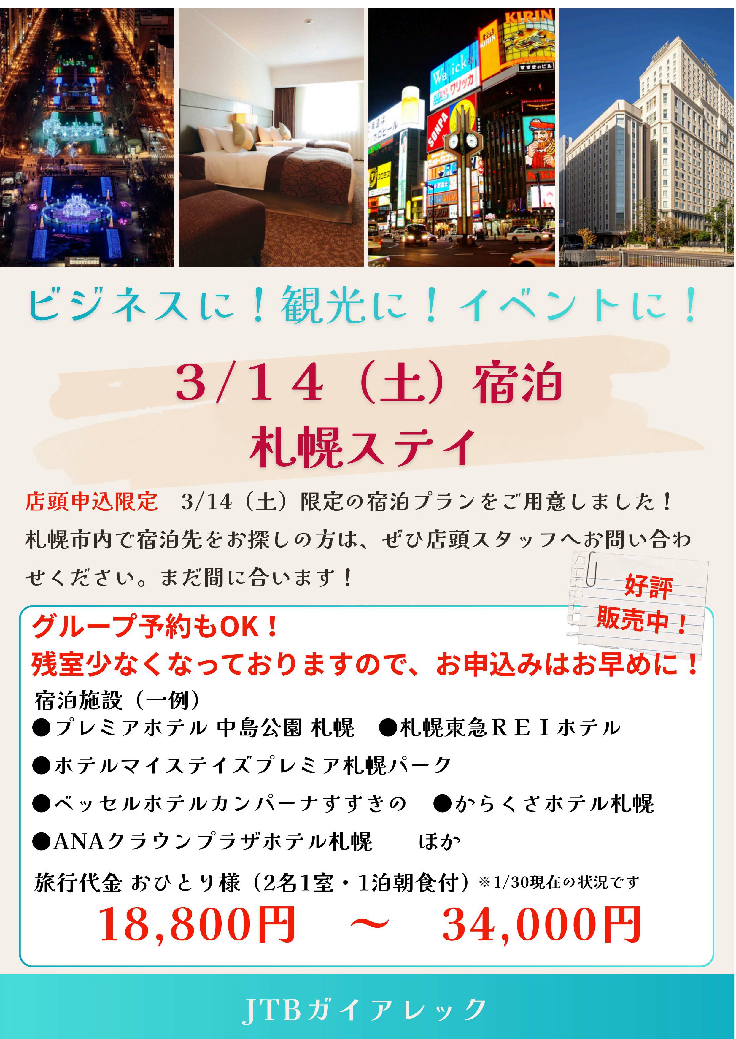 札幌市内で宿泊先をお探しの方は、ぜひ店頭スタッフへお問い合わ
