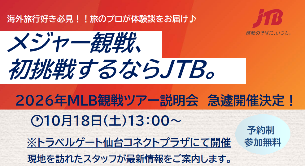 野球ファンの皆様、お待たせいたしました! 2026年シーズンのMLB観戦ツアーがついに発表となりました。