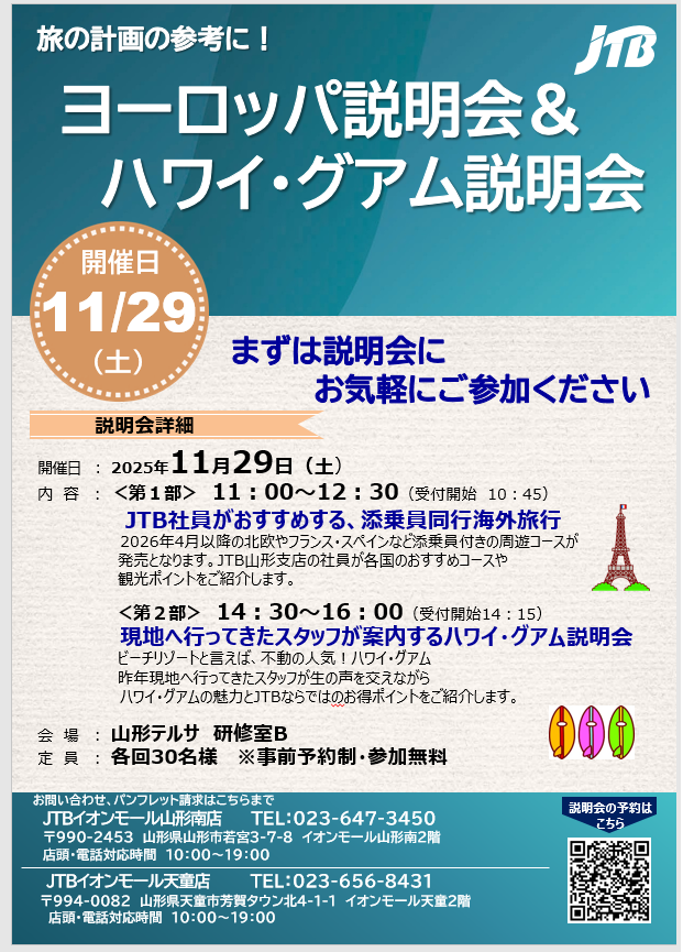 最寄りのJTB店舗で旅の相談&お支払いをすることができますよ。(*)