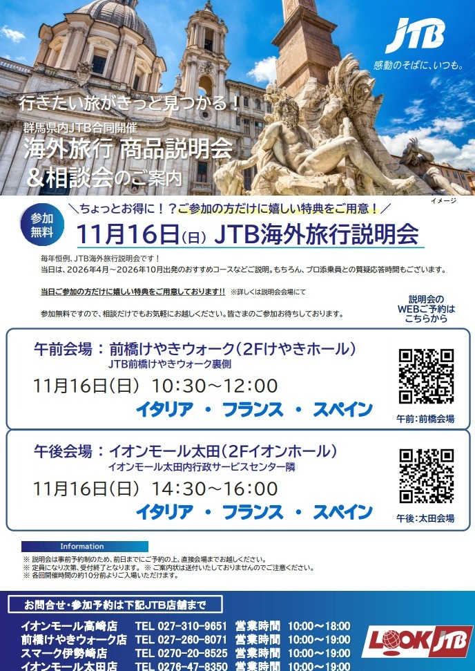 最寄りのJTB店舗で旅の相談&お支払いをすることができますよ。(*)