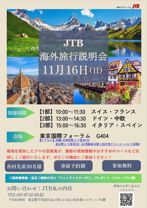 ご相談、ご予約はJTB丸の内店まで。