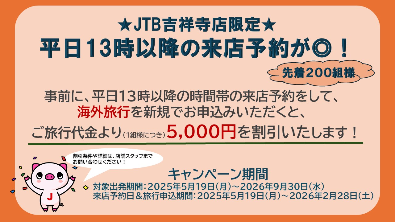 (平日13時~)かつ海外旅行をお申込みのお客様へ
