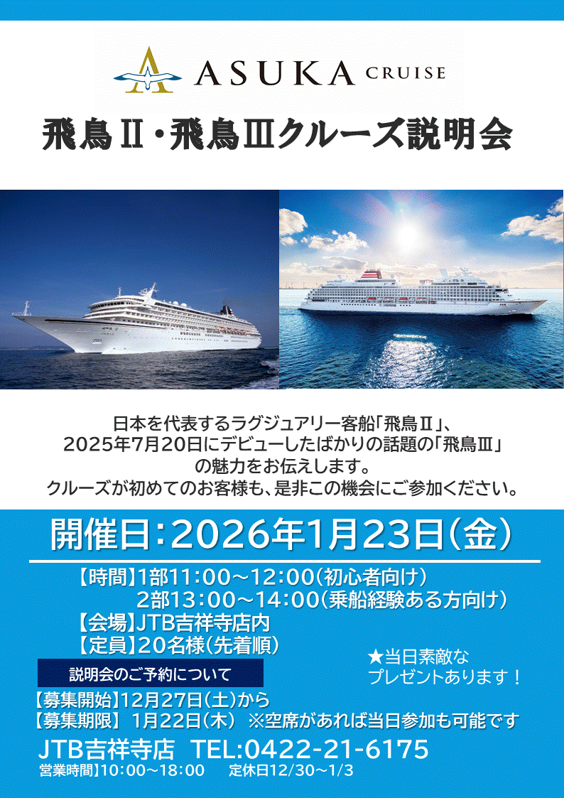 クルーズが初めてのお客様も、リピーターのお客様も是非この機会にご参加ください。