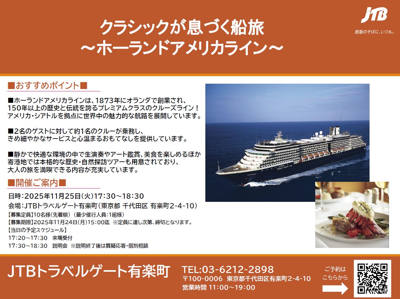 詳細はJTBトラベルゲート有楽町までお問い合わせください