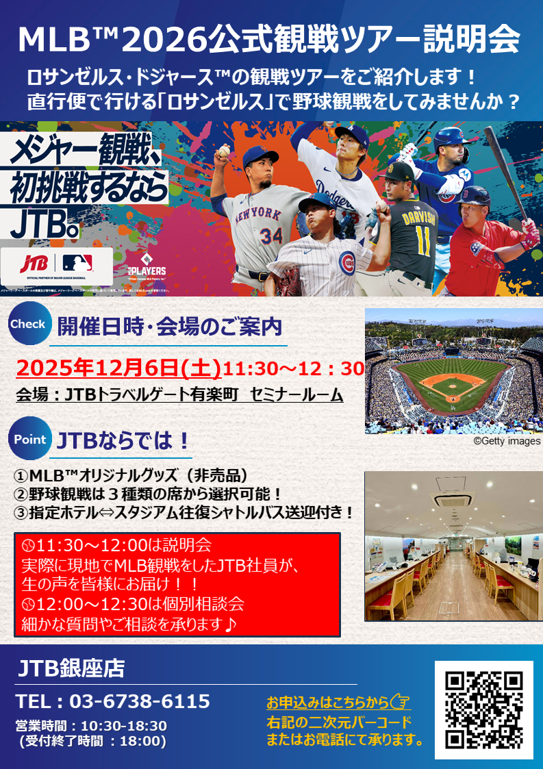 JTBはMLB™(メジャーリーグベースボール)のアジアにおけるトラベル&ホスピタリティ事業のオフィシャルパートナーです。さらに、2025年に日本の旅行会社として初めての「オフィシャルパートナー・オブ・ザ・ロサンゼルス・ドジャース」となりました。
