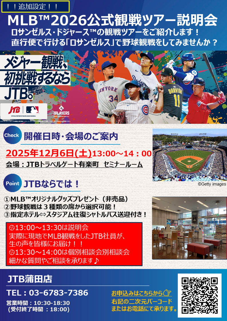 2026年こそ行きたい!MLB 2026公式観戦ツアー説明会のご案内です♪