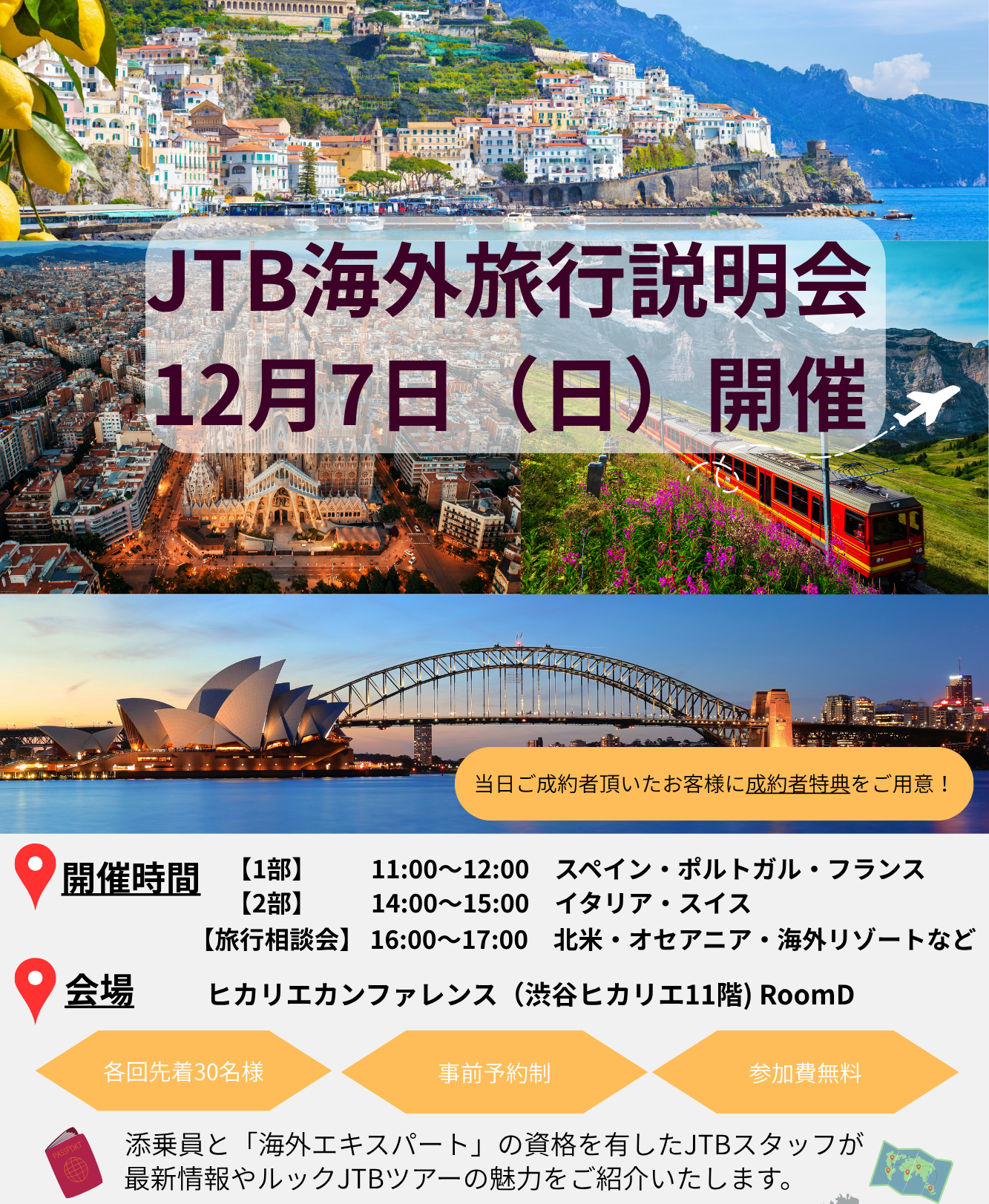 海外旅行も国内旅行もたっぷり充実!はじめての海外旅行や学生旅行に嬉しいポイントがもりだくさん!あまり旅行に慣れていない方でも、サポート充実のJTBなら安心です。