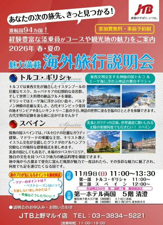 2025年11月9日(日) 第一ホテル両国にて海外旅行説明会を開催します!