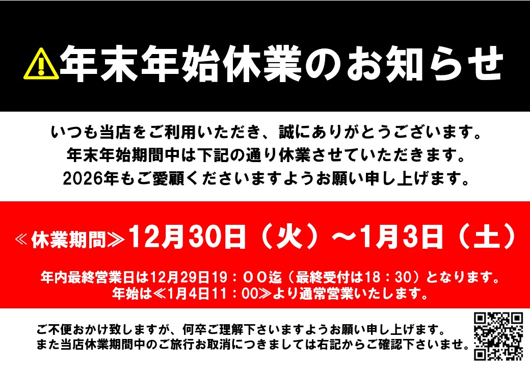 2025年12月30日(火)~2026年1月3日(土)まで