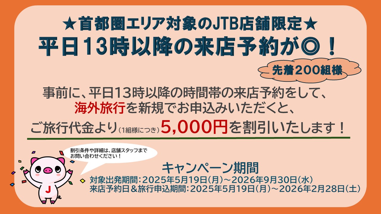 来店予約日&旅行申込期間:2025年5月19日(月)~2026年2月28日(土)