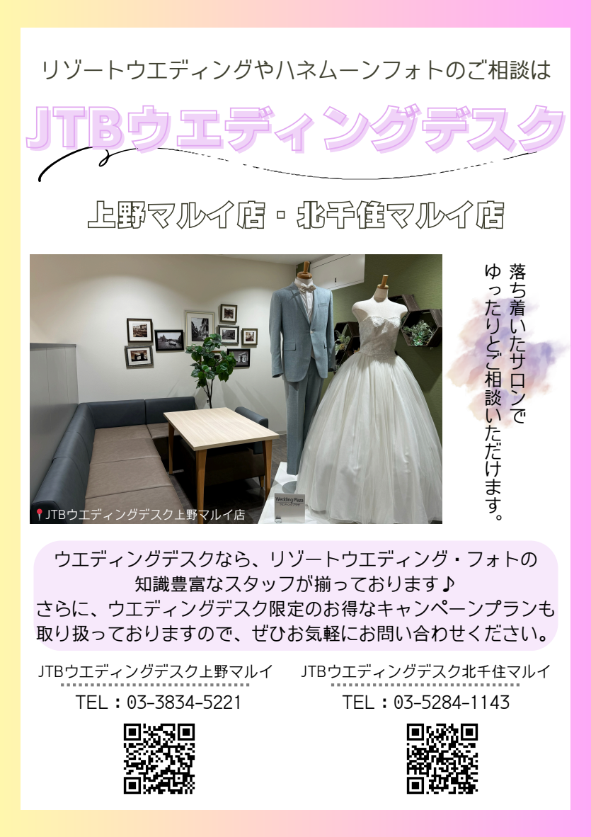 ウエディングデスク上野マルイ店・ウエディングデスク北千住マルイ店より