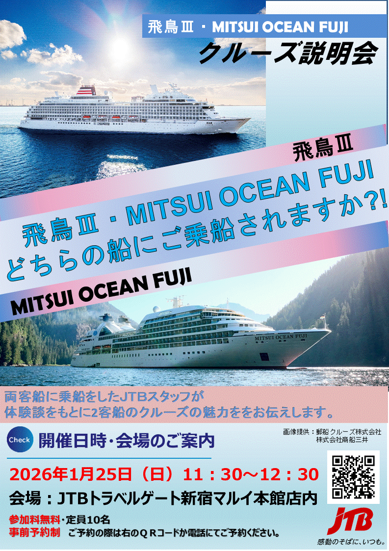 両客船に乗船したJTBのスタッフが体験談をもとに2客船のクルーズの魅力をお伝えします!