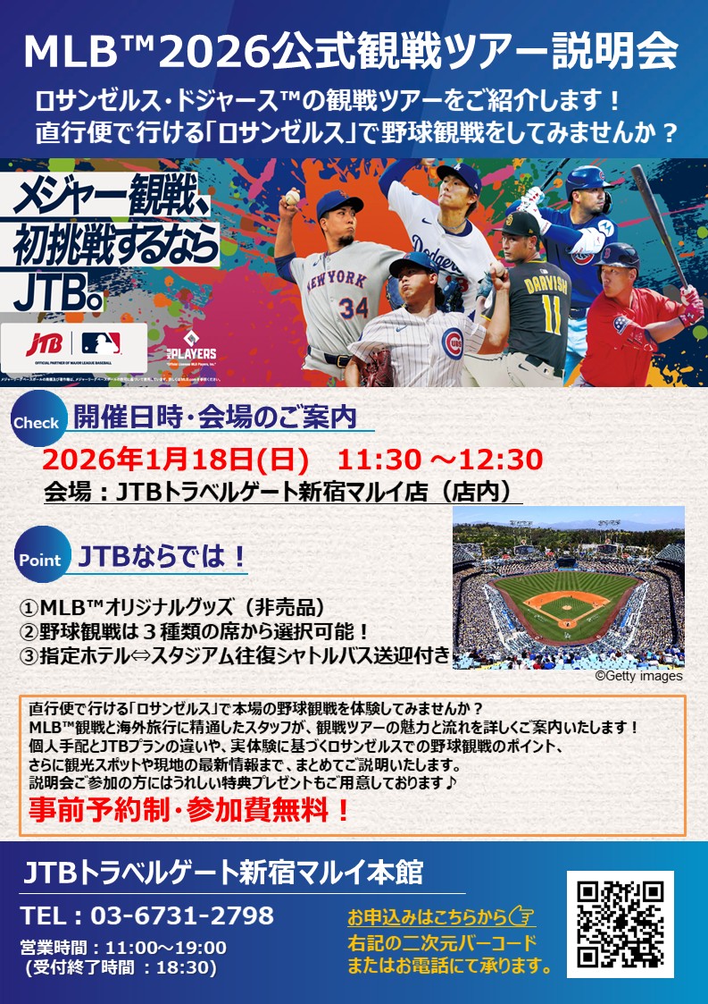 JTBはMLB™(メジャーリーグベースボール)のアジアにおけるトラベル&ホスピタリティ事業のオフィシャルパートナーです。さらに、2025年に日本の旅行会社として初めての「オフィシャルパートナー・オブ・ザ・ロサンゼルス・ドジャース」となりました。