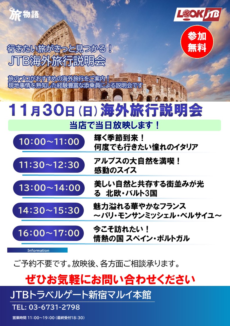 会場までお越しいただかなくても、JTBトラベルゲート新宿マルイ本館内で