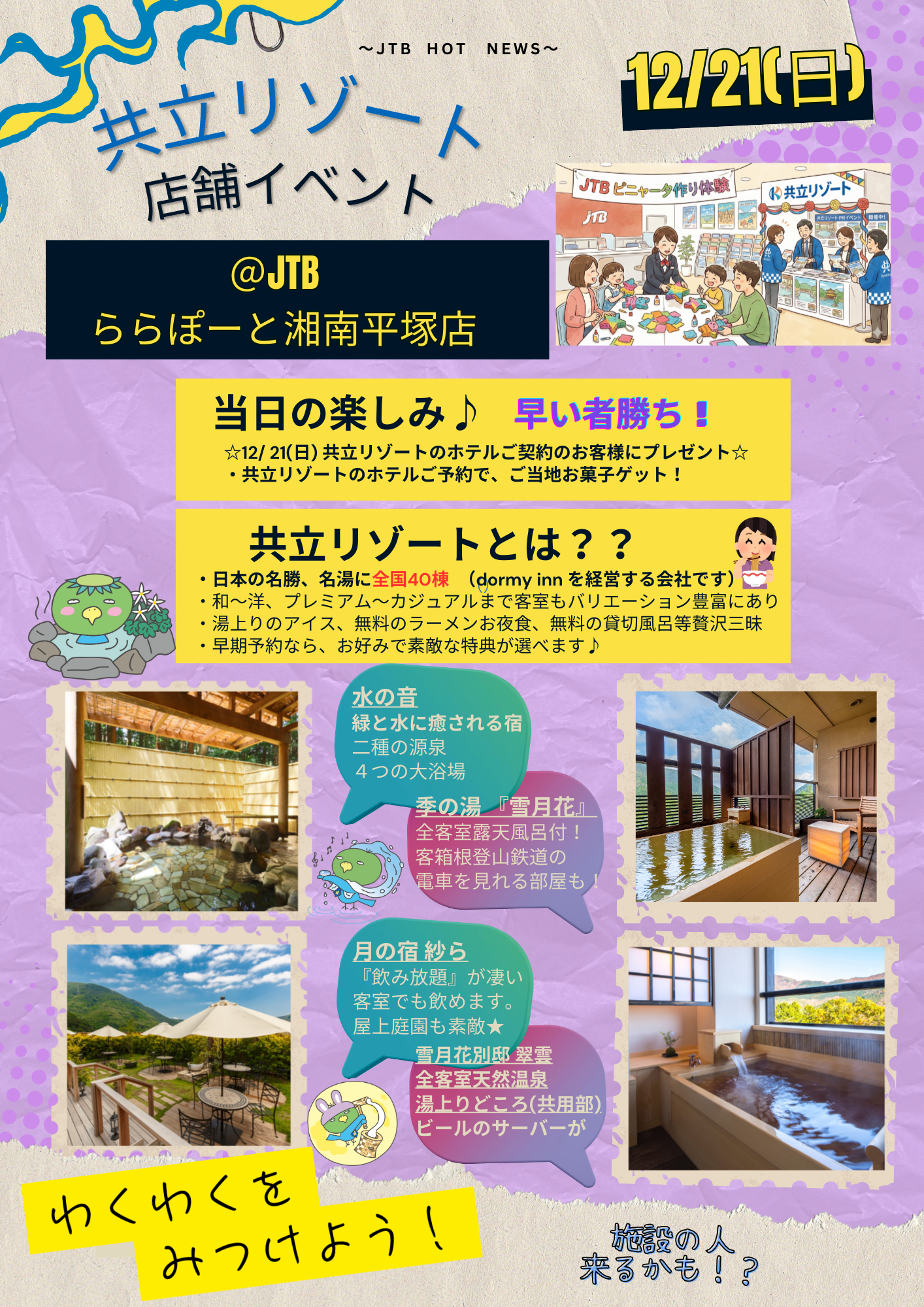 12/20(土)、12/21(日)の2日間❝共立リゾートDAY❞を開催