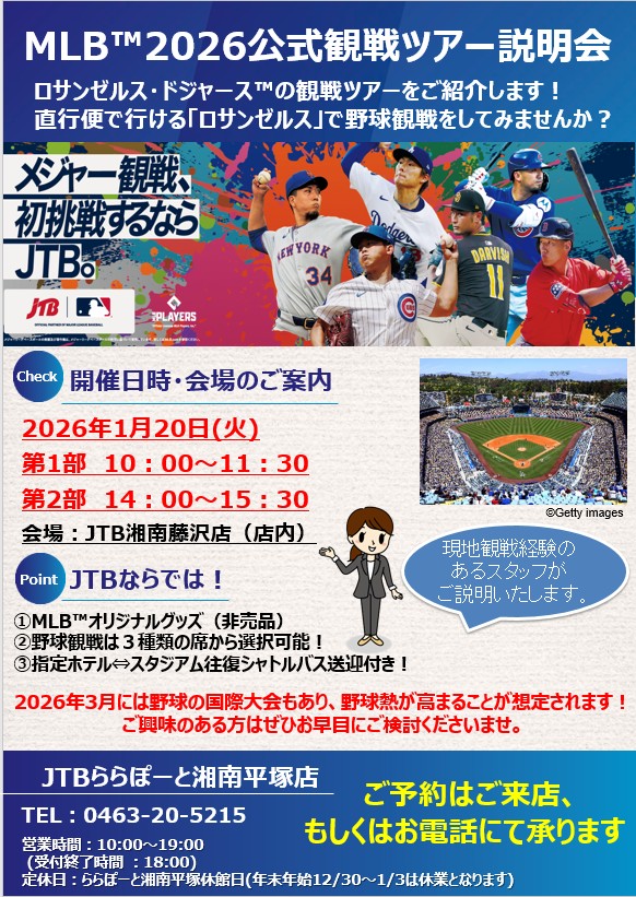 2026年1月20日(火)にMLB™ 2026公式観戦ツアー説明会を開催いたします👍