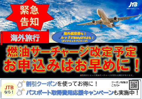 燃油サーチャージ改定後は旅行代金が上がる可能性も…