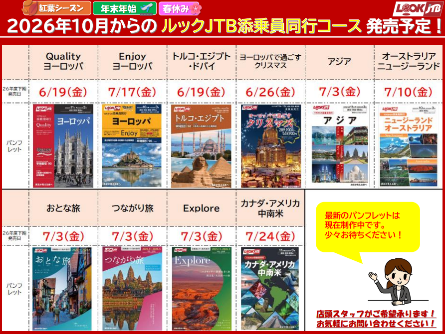 2026年後半(秋~冬出発分) ルックJTB添乗員同行ツアー商品発売情報が発表となりました📄✨