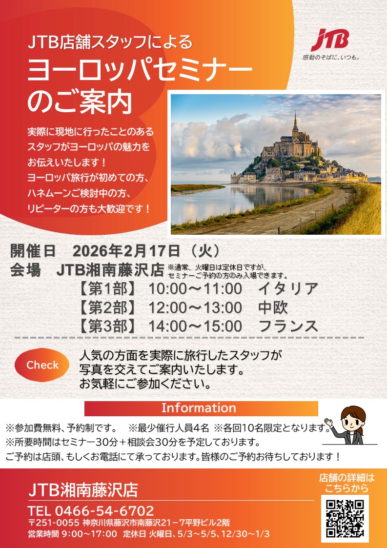 📞 JTB湘南藤沢店 TEL:0466-54-6702