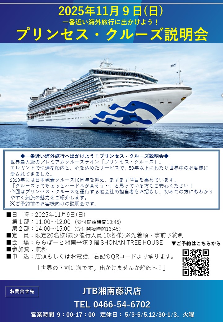 JTB湘南藤沢店はクルーズコンサルタント資格を持つスタッフが多数在籍しています。来店予約を承っております。