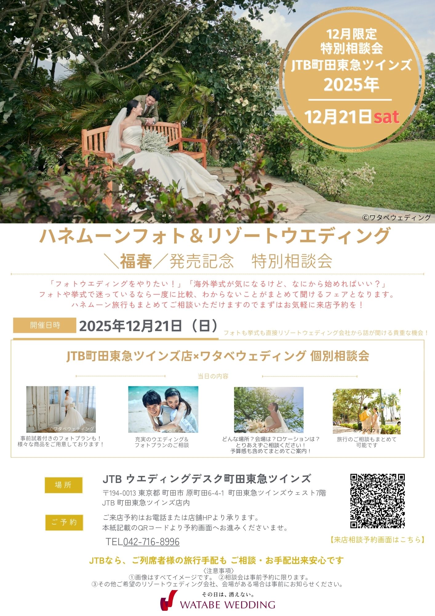 人気のウェディング会社専任スタッフとJTBによる個別相談会のご案内です♪【事前予約制】