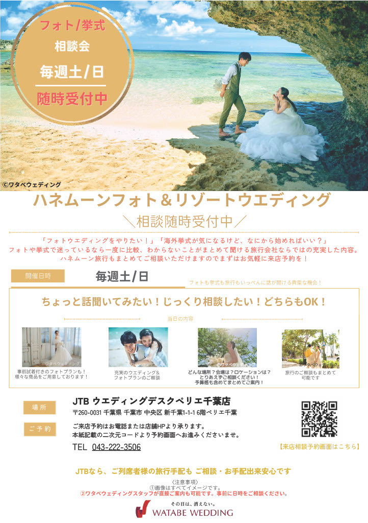JTBウエディングデスクペリエ千葉 JTB そごう千葉店 JTB総合提携店 サントラベルセンター ゆみ~る鎌取店