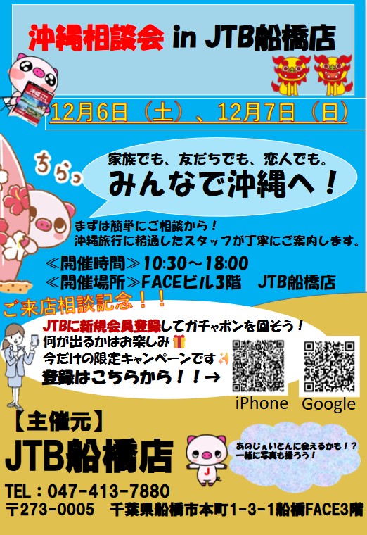🌴JTB船橋店では、沖縄の魅力を知り尽くしたスタッフによる「沖縄旅行相談会」 を12/6(土)、12/7(日)に開催いたします!🌴