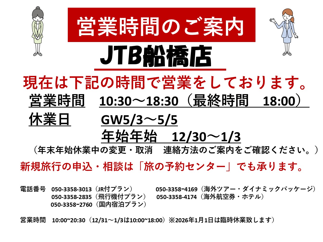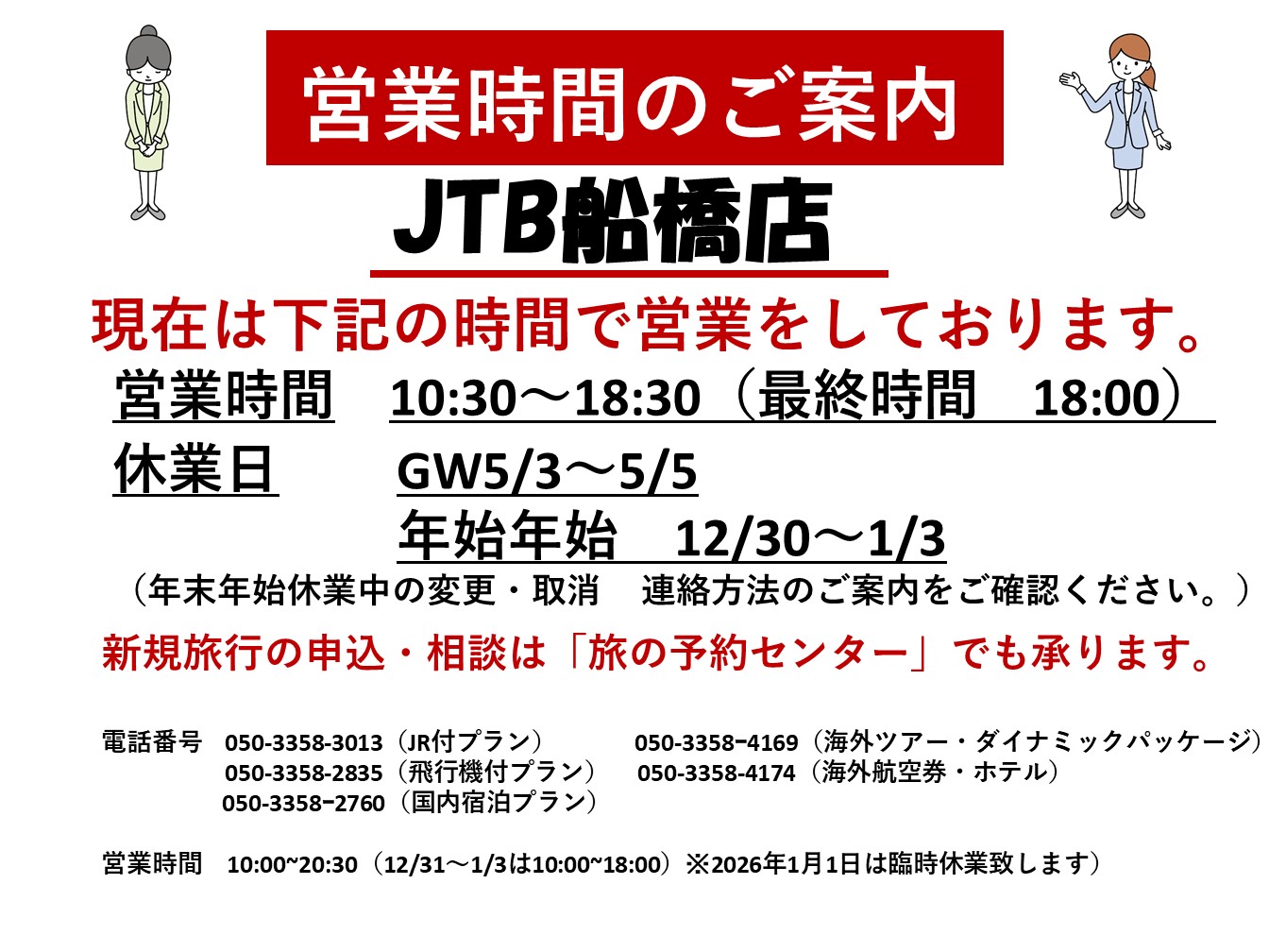 平素よりJTB船橋店をご愛顧賜り誠にありがとうございます。