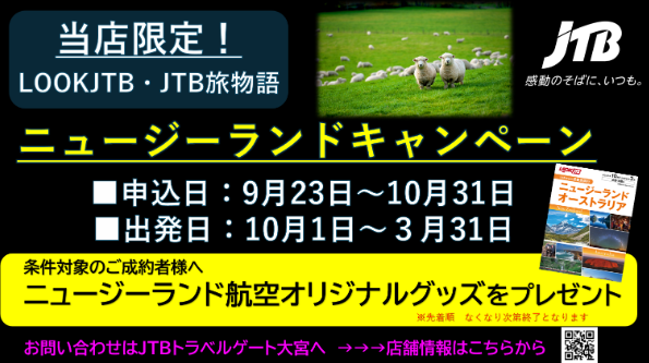 また、トラベルゲート大宮限定!NZキャンペーンを開催します✨