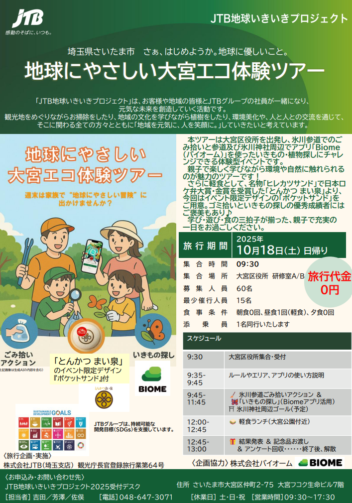 このたび、JTB埼玉支店では親子で楽しく環境について学べる体験型イベントを開催いたします!