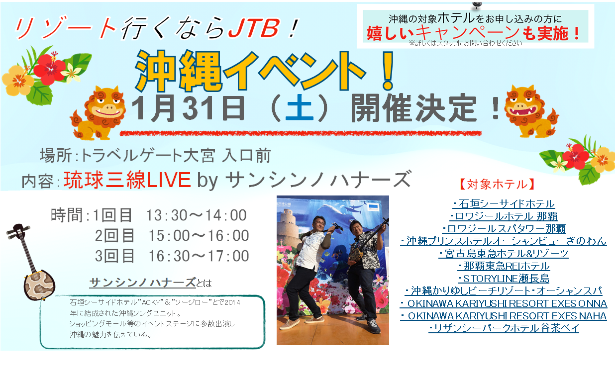 1月31日(土)は、ぜひトラベルゲート大宮で沖縄のご旅行相談へお越しください✨