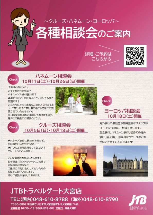 最寄りのJTB店舗で旅の相談&お支払いをすることができますよ。(*)