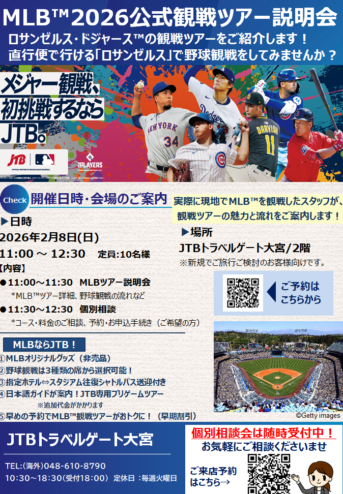 JTBはMLB™(メジャーリーグベースボール)のアジアにおけるトラベル&ホスピタリティ事業のオフィシャルパートナーです。さらに、2025年に日本の旅行会社として初めての「オフィシャルパートナー・オブ・ザ・ロサンゼルス・ドジャース」となりました。