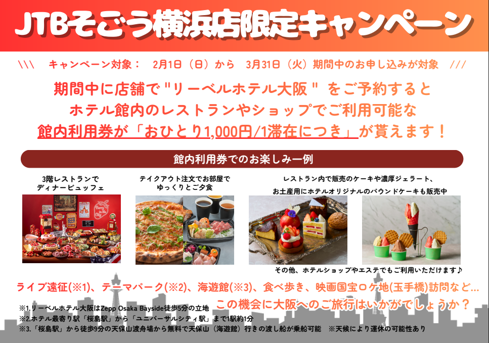 JTBそごう横浜店の一押し👍ホテルは【リーベルホテル大阪】