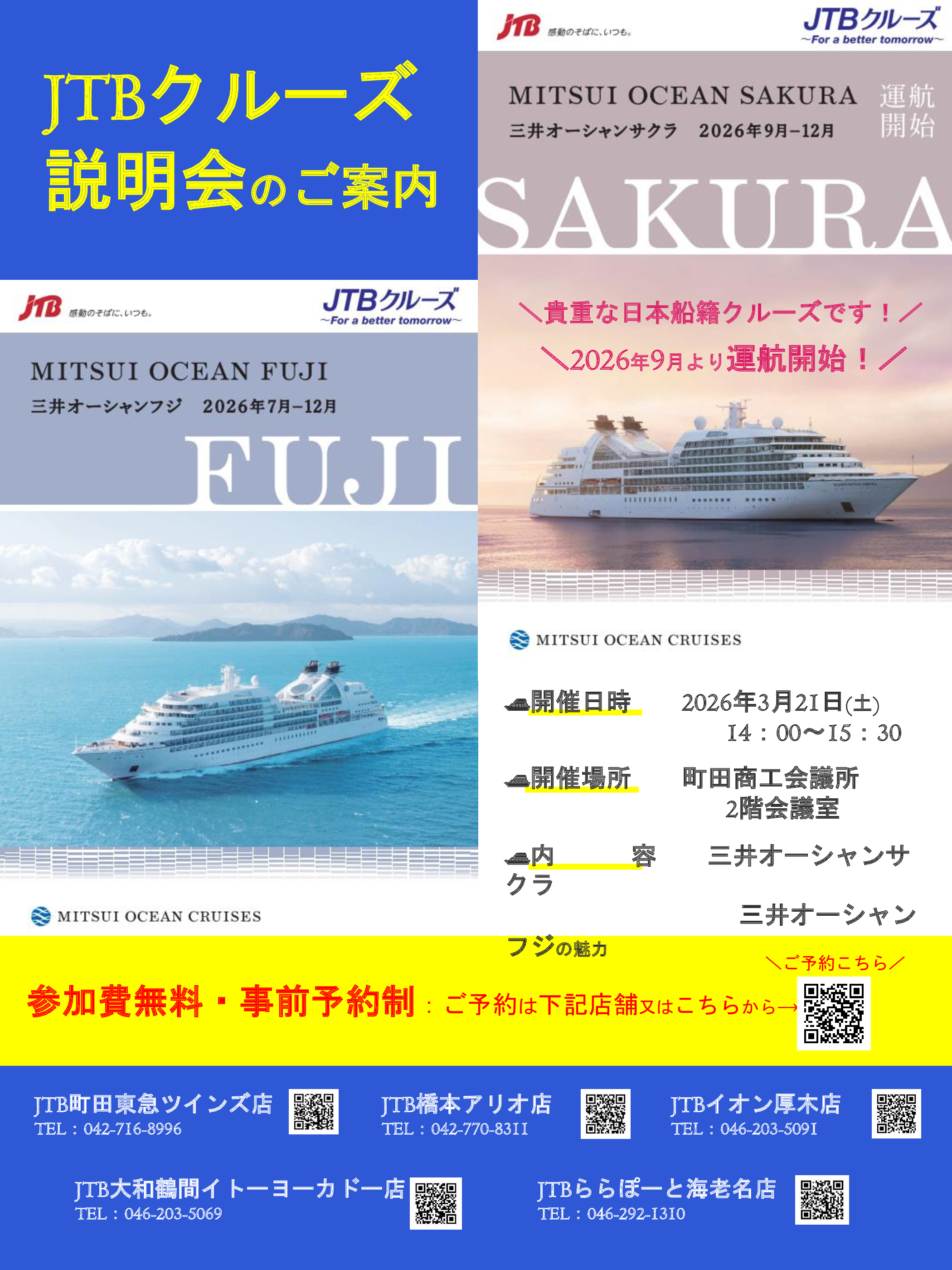 お問い合わせ:JTBイオン厚木店までお問合せください。