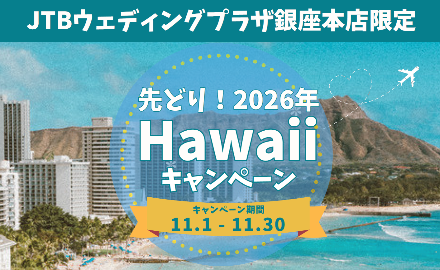 ※JTBウエディングプラザ本店限定のキャンペーンのため当店でのお申込みが対象です。