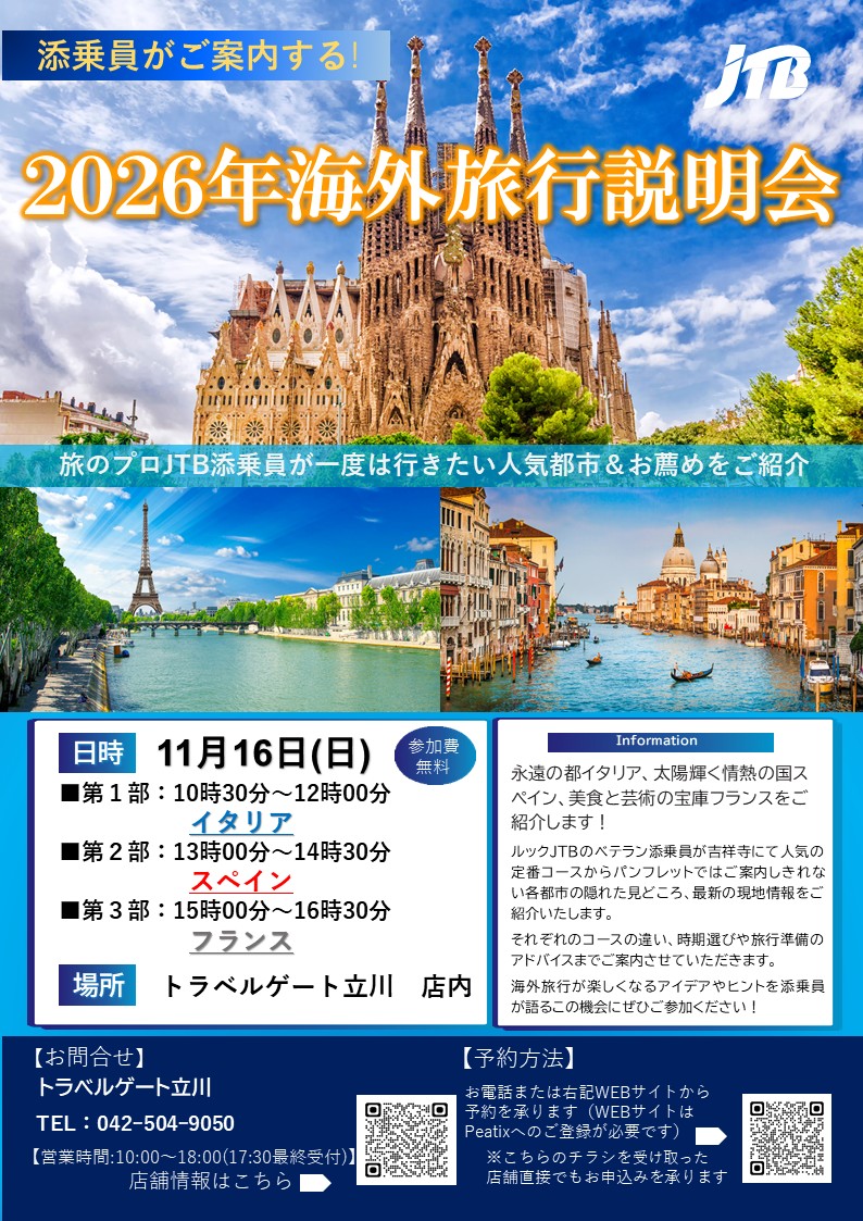 今年もルックJTBのベテラン添乗員が人気の定番コースからパンフレットではご案内しきれない各都市の隠れた見どころ、最新の現地情報をご紹介いたします!