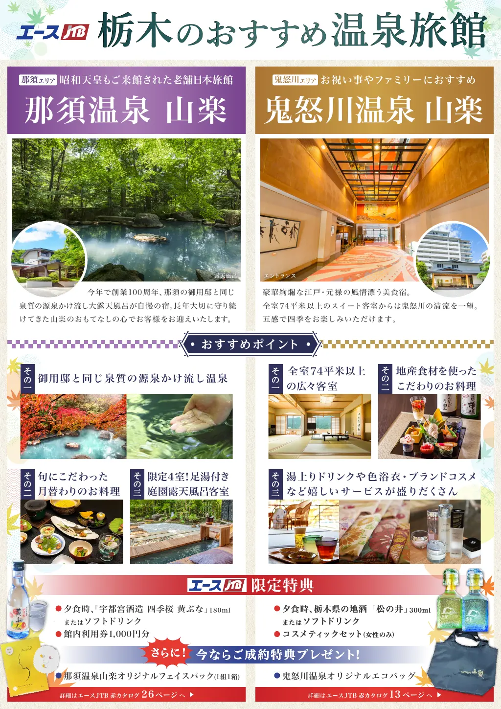 那須、鬼怒川温泉へは温泉旅館「山楽」がおすすめです!