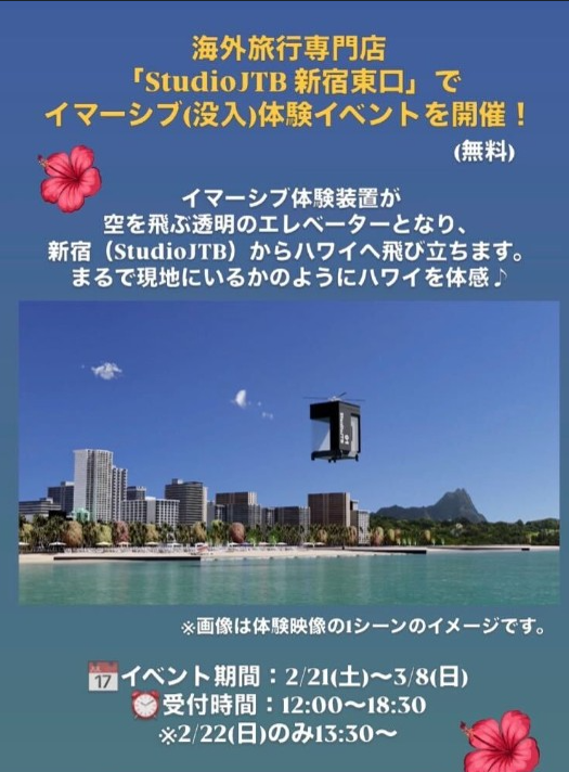会 場:JTB海外旅行専門店 StudioJTB新宿東口(新宿駅東口スグ!!)