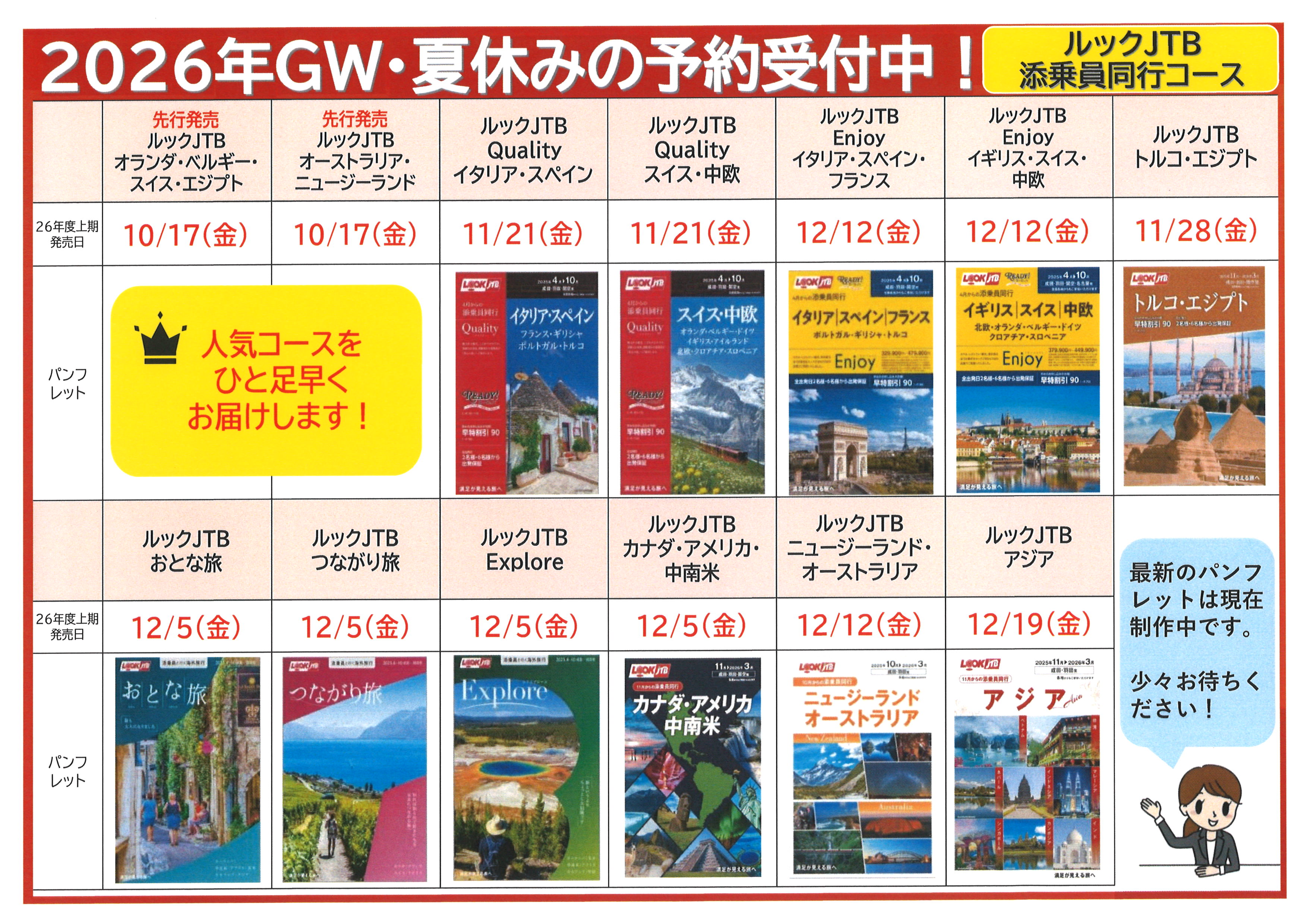 海外旅行も国内旅行もたっぷり充実!はじめての海外旅行や学生旅行に嬉しいポイントがもりだくさん!あまり旅行に慣れていない方でも、サポート充実のJTBなら安心です。
