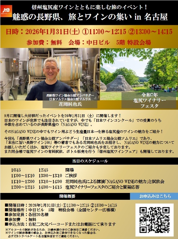 「魅惑の長野県、旅とワインの集いin名古屋」を開催します!