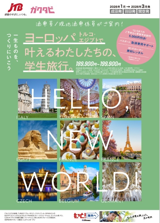 海外旅行も国内旅行もたっぷり充実!はじめての海外旅行や学生旅行に嬉しいポイントがもりだくさん!あまり旅行に慣れていない方でも、サポート充実のJTBなら安心です。