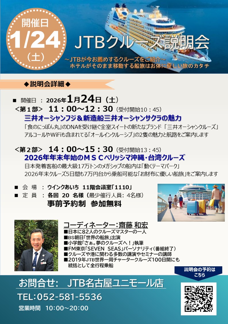 JTB名古屋ユニモール店 052-581-5536