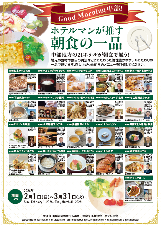 宿泊翌朝、ホテルマンおすすめのこだわりの一品を味わい、ぜひ評価してください。