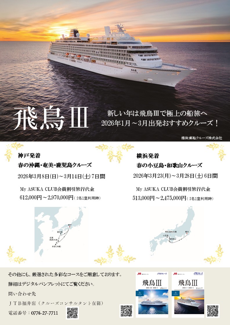 詳細・ご予約は JTB福井店までお気軽にお問い合わせください。